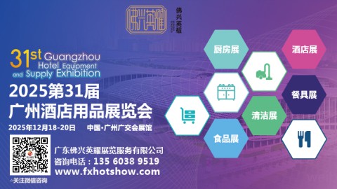 第三十一届广州酒店用品展览会是由广东佛兴英耀展览服务有限公司主办。于2025年12月18-20日在中国进出口商品交易会琶洲展馆(即广交会展馆)。本届展览会展览面积30万平方米,参展企业4000多家,展品范围包括厨房设备、陶瓷餐具、玻璃器皿、餐具包装、清洁设备、大堂用品、客房用品、酒店家具、酒店智能、食品饮料、餐饮食材、预制菜等酒店用品门类的上下游全产业链。预计展会期间观众人数像往年一样,每天有10多万国内外的观众前来参观订货。本届展览会是国内外酒店用品行业的一个盛会。