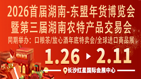 由湖南丰源会展有限公司、长沙仁创会展服务有限公司共同承办的"2026首届湖南-东盟年货博览会暨第三届湖南农特产品交易会暨口粮茶/放心酒年底特卖会暨全球进口商品展"将于2026年1月26日至2月11日在长沙红星国际会展中心隆重举行。本届年货购物节暨口粮茶/放心酒年底特卖会通过主题创新、形式创新、内容创新,打造一个不同于传统年货展销会的新型展会。我们以"口粮茶"和"口粮酒"为切入点,聚焦细分市场,为消费者提供专业化、精准化的年货采购体验;通过国潮主题、非遗体验、互动活动等内容,为消费者创造沉浸式、记忆点深刻的文化体验;通过数字化管理、全域营销、专业服务等手段,为参展商打造高效益、高效率的商务平台。2026首届湖南-东盟年货博览会暨第三届湖南农特产品交易会暨口粮茶/放心酒年底特卖会致力于为参展企业打造高效的品牌推广平台和产品销售渠道,帮助您抢占年货市场,实现新春开门红!