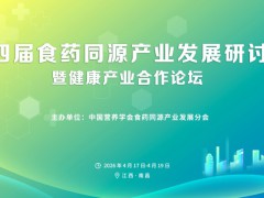 为积极响应国家关于“健康中国”和中医药振兴发展的战略部署,抢抓全球大健康产业战略机遇,推动产学研深度融合与科技成果转化,推动食药同源产业向高端化、国际化方向迈进,中国营养学会食药同源产业发展分会定于 2026年 4 月 17 日-4 月 19 日在江西省南昌市举办“第四届食药同源产业发展研讨会暨健康产业合作论坛”。届时将邀请领域内专家和学者就最新科学进展进行学术报告,现将有关事宜通知如下: