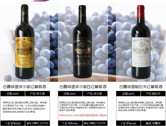 法国波尔多酒庄古露系列的古露城堡波尔多丘红葡萄酒曾获得2012年法国里昂国际葡萄酒大赛金奖