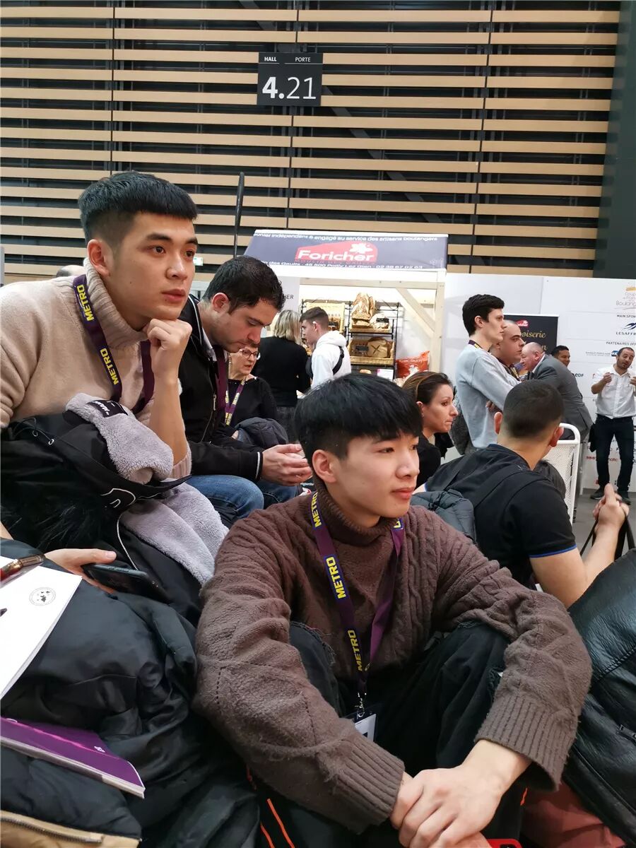 我们的比赛是在元月28号晚上开始,26-28日,同样的赛场内,还有一场全法最佳面包师赛,廖大师带队观摩了比赛场地,我跟他们说:找到我们抽签的工位,坐在那里观察设备摆放、物料、还有各队的操作流程,自己再考虑一下,如果你在台上,你会怎么操作?哪些流程还可以优化?他们都观察得特别仔细。