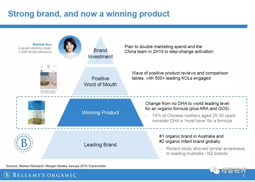 近日,贝拉米澳大利亚有限公司(ASX: BAL)发布公告称:澳洲贝拉米有机在配方奶粉全新升级的同时将携手首位品牌代言人孙燕姿,进一步提升品牌知名度。新推出的全新配方婴幼儿配方奶粉,采用全乳糖配方,DHA含量更处于行业领先地位,此举将提升贝拉米有机的产品品质,满足消费者的更高需求。同时,澳洲贝拉米有机也有意消费者提高对有机理念的认知度与认同感,从而更好的塑造专业有机婴儿食品公司的形象。通过这次的品牌全新升级,澳洲贝拉米有机将建立一个全新的平台,双倍增加在中国市场的投入,以获取持续的利润增长。