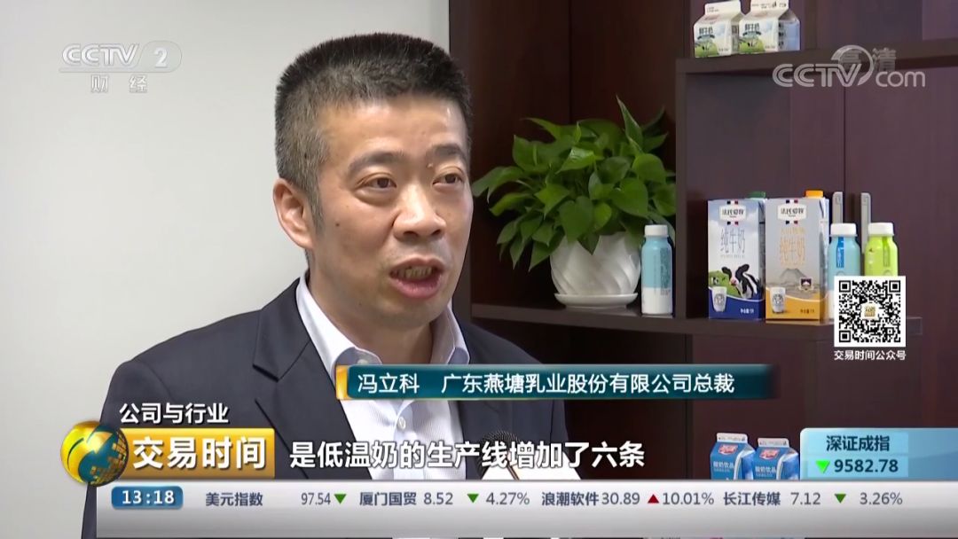 广东燕塘乳业股份有限公司总裁 冯立科:“我们新工厂比原来工厂来说,低温奶的生产线增加了六条,2018年我们推出了十多个低温奶的新产品,也深受消费者的喜爱,预计低温奶会呈现更好增长的势头。”
