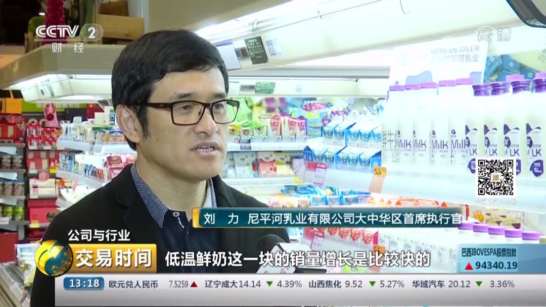 尼平河乳业有限公司大中华区首席执行官 刘力:“低温鲜奶这一块的销量增长是比较快的,2016年的100万元,2017年的300万元,2018年的近千万元,2019年我们在巴氏鲜奶这块是1500万的销售目标。”