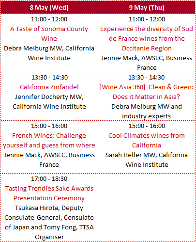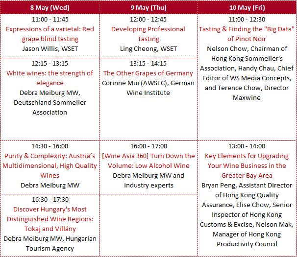 观众在展会中可发掘世界各地的葡萄酒与烈酒新贵和实力派出品,无论是单一麦芽威士忌、鸡尾酒、香槟、还是特别产区的陈年佳酿,都一应俱备。除此以外,观众还可认识来自各国的供应商,包括奥地利、法国、德国、匈牙利、意大利、葡萄牙、西班牙、美国等在内的 13 个地区及行业组织展团。