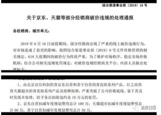 “6·18”电商节期间,京东、天猫、苏宁等平台促销郎酒,这让郎酒急眼了,已纸处罚从天而降。
