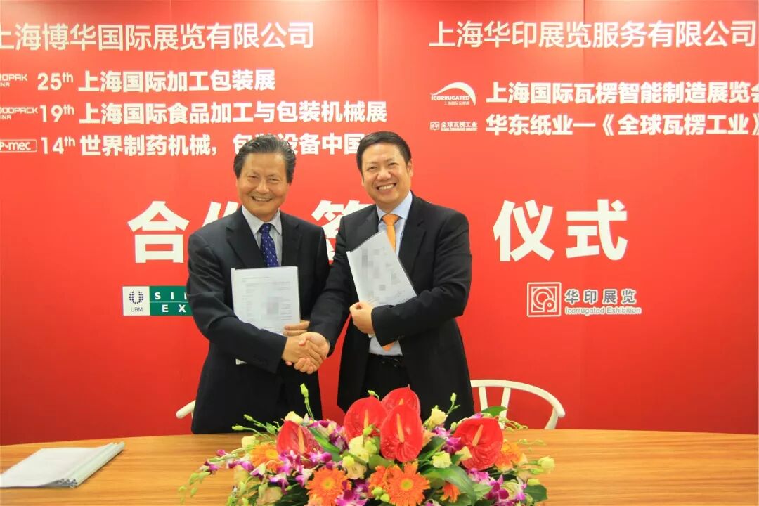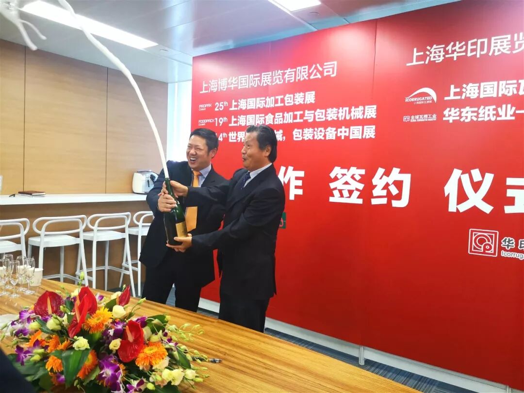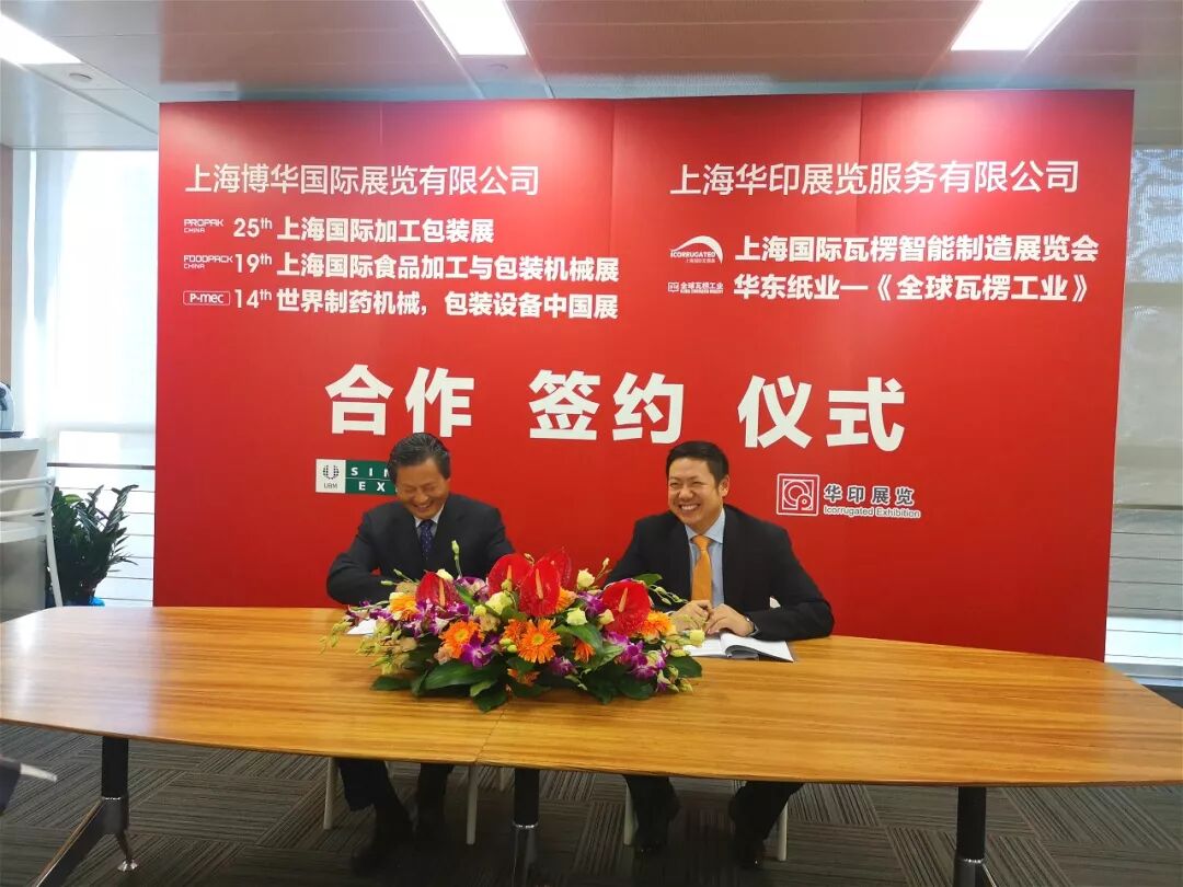 2019年6月14日,“上海华印展览服务有限公司”与“上海博华国际展览有限公司”合作签约仪式在上海博华国际展览有限公司(简称:上海博华)隆重举行。此次签约,标志着双方建立了紧密的战略合作伙伴关系。双方宣布,在2020年上海博华举办的食品、医药、包装展会(ProPak&FoodPack China 2020、P-MEC China 2020)期间华印使用国家会展中心1、2号馆同期举办“上海国际瓦楞展iCorrugated 2020"和"上海国际容器标签加工展iConverting 2020"。