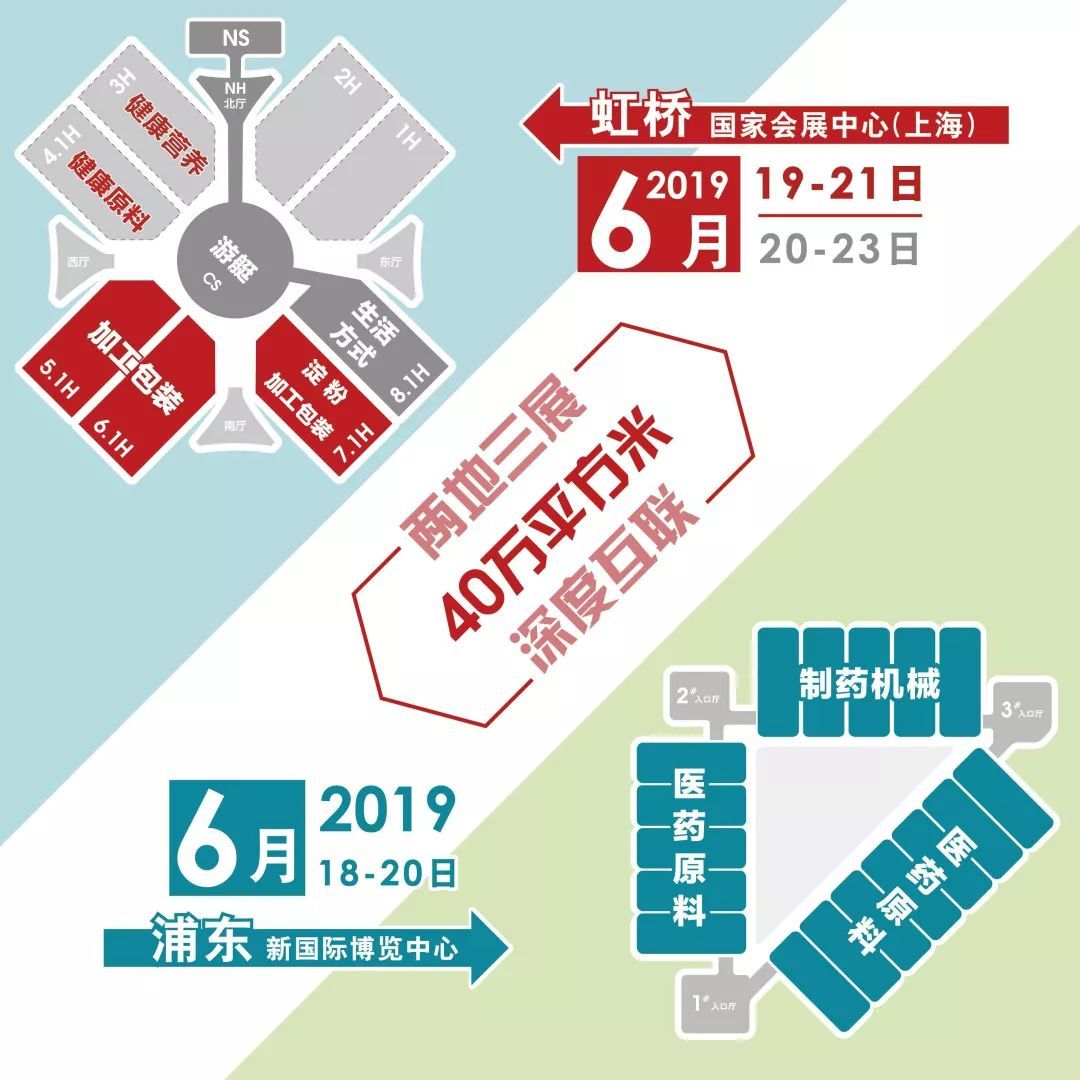 上海国际加工包装展(ProPak China)和上海国际食品加工与包装机械展(FoodPack China)于2019年6月19日-6月21日在国家会展中心(上海)开展,本届展会以"上海国际食品加工与包装机械展览会联展"的形式全新亮相。此次联展携手Informa Markets旗下健康原料、食品配料、营养保健品、淀粉工业等细类展会,形成贯通食品配料、食品加工、包装、营养保健品等产业链各环节的中国加工行业首创展会。于此同时,Informa Markets旗下“CPhI China世界制药原料展”将在上海浦东新国际展览中心隆重举行。在上海的浦东与浦西双展览馆将同期举办医药、食品加工包装两大行业盛会,开创中国展览先河,展出面积将达40万平方米,共享5000多家参展商和15万专业观众资源,机不可失!