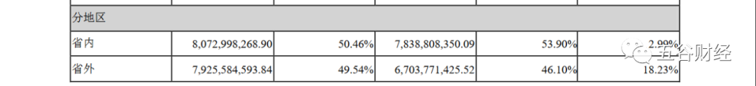 数据显示,2019年上半年,洋河股份来自江苏省内和江苏省外的收入,各自约为80.73亿和79.26亿元,同比增幅各在3%和18%左右。