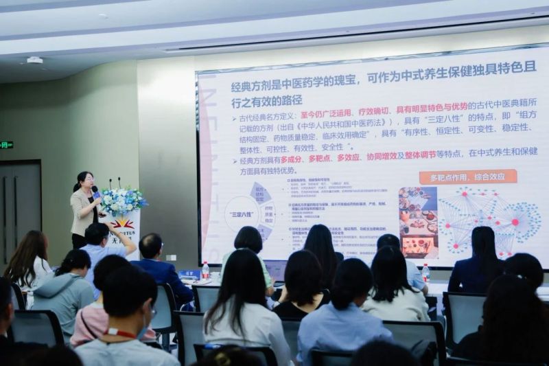 活动最后,无限极(中国)有限公司前沿技术研究经理赵宏伟带来《经典方剂在大健康产品中的现代化应用研究》主题分享。她深入剖析经典方剂在大健康领域的发展机遇与现代化路径,结合无限极实践,分享经典方剂在养生保健健康食品中的应用案例与研究成果。
