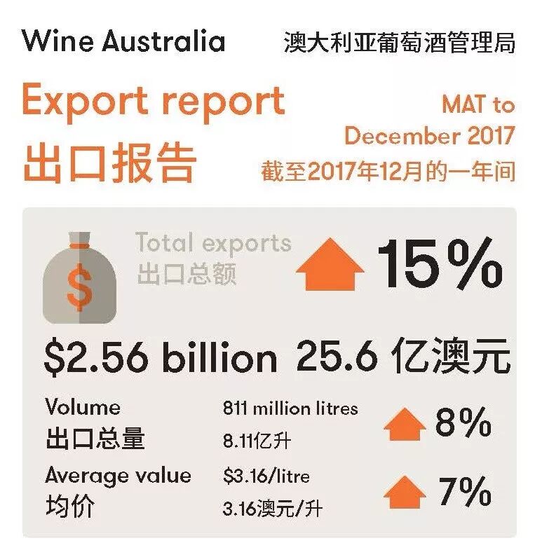 澳大利亚葡萄酒管理局(Wine Australia)于2018年1月发布最新出口报告。该报告显示,澳大利亚葡萄酒在全球市场上出口额持续增长,再创新纪录,尤其是中国市场的迅猛增长,带动了全球涨势。